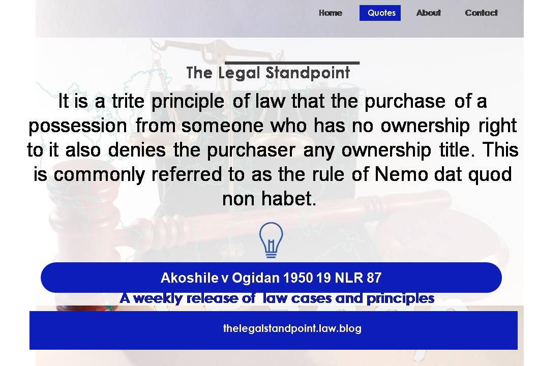 From these two cases, it is evident that just as it is impossible to build something on nothing and expect it to stand, it is also unthinkable to give out what you do not have. This informed the Latin maxim nemo dat quod non habet. This translates to mean you can not give what you do not have.