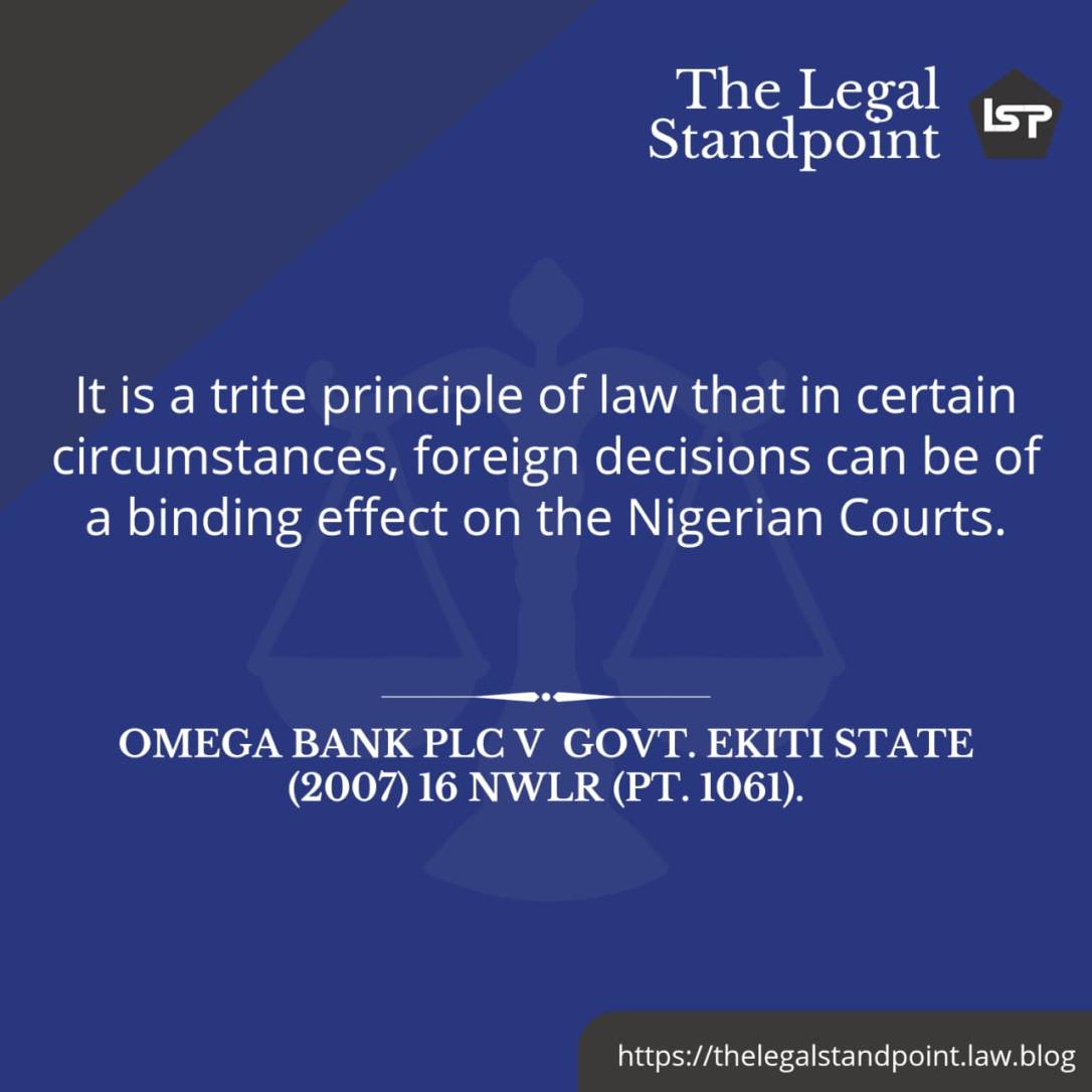 Irrespective of the mode of instituting an action, whether it is based on contention issues (Writ of Summons); interpretation of the Constitution (Originating Summons) etc, every counsel representing a litigant is always asking the Court to do something for his client.Before the court can dance to the counsel’s tune, he needs to present authorities before the Court. In Nigerian jurisprudence, authorities can either be primary or secondary. The main difference between them is the weight of influence attached to each of them.While primary authorities are binding upon the Nigerian court, secondary authorities, on the other hand, are persuasive as held in a plethora of cases such as Ladoja v. INEC (2007) 12 NWLR (Pt. 1047) 119 at 182. The general principle of law is that foreign precedents, that is, judgments gotten from other countries, are persuasive in Nigeria. However, there are two exceptions:1. The first exception is that where the principle adopted from a foreign decision has been applied by Nigerian courts over the years, such a principle cannot be regarded as a foreign decision. This exception was laid down by Akintan JSC in Adetoun Oladeji (Nig) LTD v Nigerian Breweries PLC (2007) LPELR-SC.91/2002 where he stated that: “the other point I will like to deal with is the controversy as to whether or not the principles of law laid down in Hadley v. Baxendale (1854) 9 Ex. 341 is applicable in Nigeria and binding on the courts in Nigeria. I agree with the view expressed in the lead judgment that generally speaking, decisions of English courts or any foreign courts are not binding on Nigerian courts but they are merely persuasive. I will, however, like to add that where Nigerian courts have followed a particular principle adopted from a foreign decision over the years, such as in the one in the Hadley v. Baxendale case, it will be totally erroneous to hold that such principle remains foreign in nature. I believe and hold that the said principles have ceased to be regarded as foreign in Nigeria. It has, no doubt, become part and parcel of our case law of contract. This is because the mere statement of the principles and citing any of the numerous decisions of this court where the principle had been adopted will be sufficient to make it binding on all courts in Nigeria”.2. The second exception is that Nigerian courts may resort to foreign decisions where there are no known Nigerian decisions on a principle of law. Thus, English authorities can be binding where the facts before a Nigerian Court are similar to the English case, and there are no known Nigerian decisions on the same set-out facts. Thus, in Omega Bank Plc. v. Govt. Ekiti State (2007) 16 NWLR (Pt. 1061), the Court relied on the foreign precedent of Derbyshire C.C. v. Times Newspapers in reaching its decision.Based on this second exception, if a case comes before the Nigerian Court on emerging areas of law such as Intellectual Property, Fintech, Competition Law, etc which its jurisprudence hasn’t fully been developed in Nigeria compared to other jurisdictions, the Court can rely on the foreign precedent to reach its decision provided the decided case and the case at hand are reasonably similar in fact.In conclusion, these are the two existing exceptions where foreign decisions can assume the binding nature on the Nigerian Courts.Thank you for reading. See you next week.❤