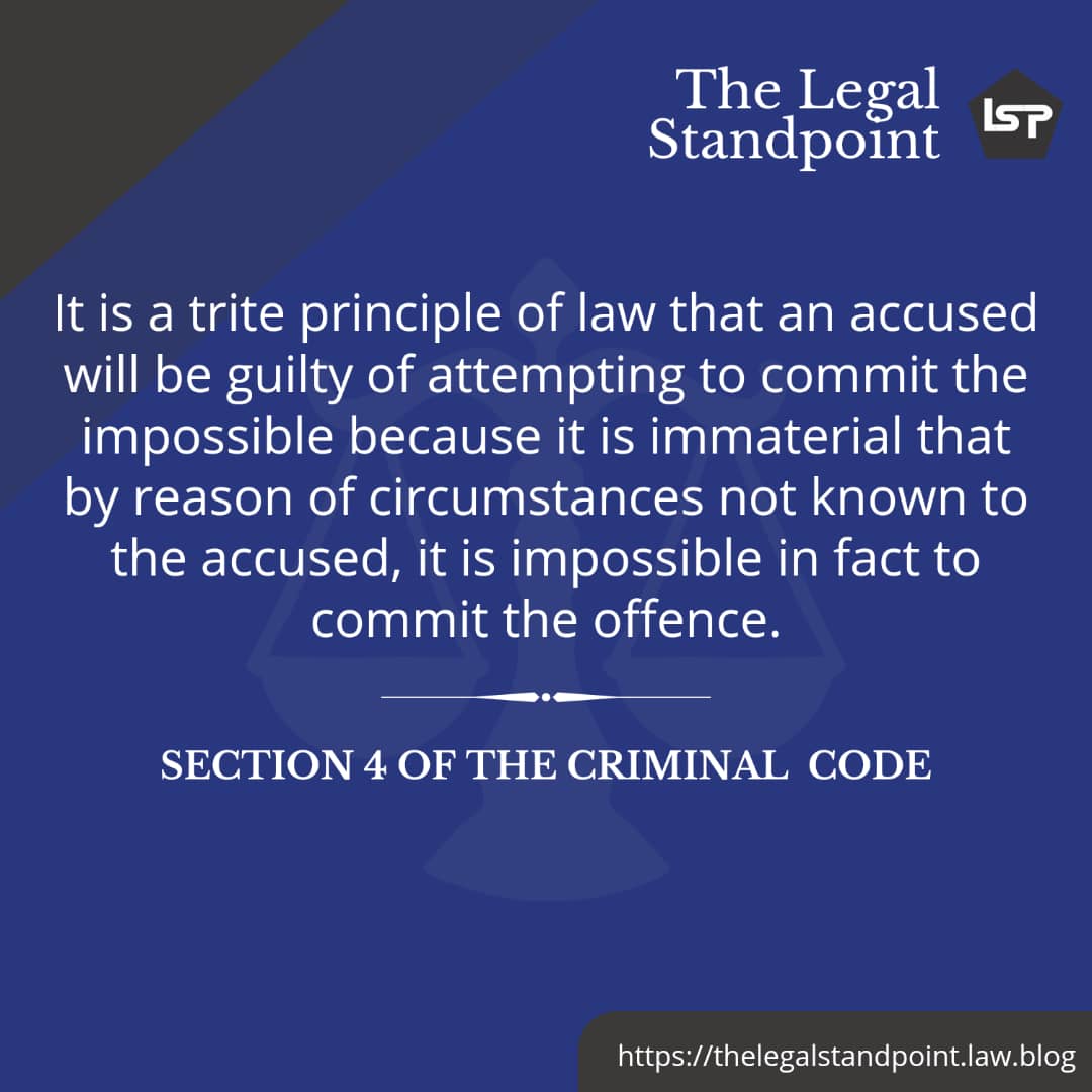 The offence of attempt is one of the inchoate offences in law. Last week, we discussed another form of inchoate offences [Conspiracy] which can be accessed here. The offence of attempt is provided for in section 4 of the Criminal code and section 95 of the penal code.
