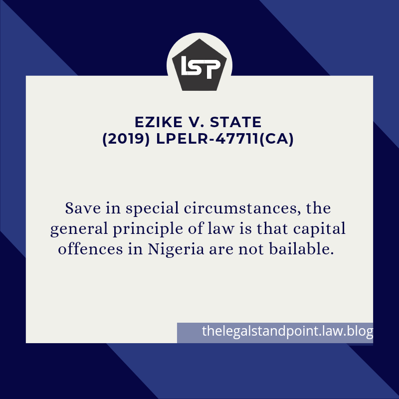 Last week, we learned about the principle of law which states that there can’t be a lesser penalty for capital offences in Nigeria. Today, as a necessary corollary, we would discuss whether an accused who is standing trial for a capital offence can be granted bail?