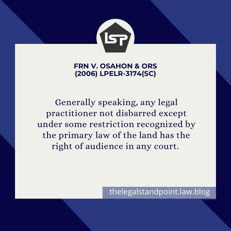1. As held in Zubairu & Anor v. Mohammed & Ors, (2009) LPELR -5124 (CA), the legal position is that resignation from employment is by giving the required length of notice or payment in lieu of notice.