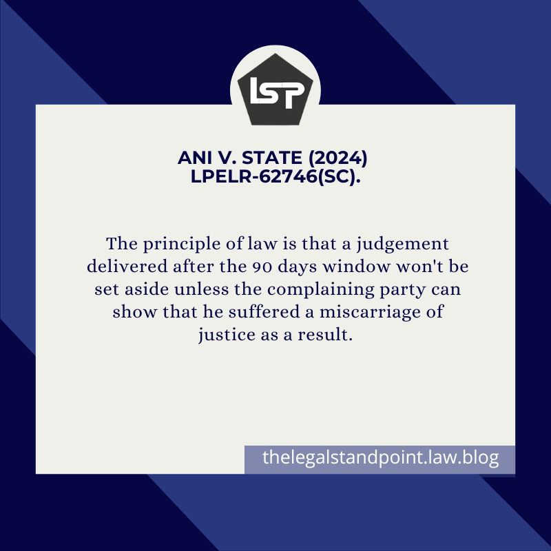 In conclusion, the principle of law is that a judgement delivered after the 90 days window won’t be set aside unless the complaining party can show that he suffered a miscarriage of justice as a result.